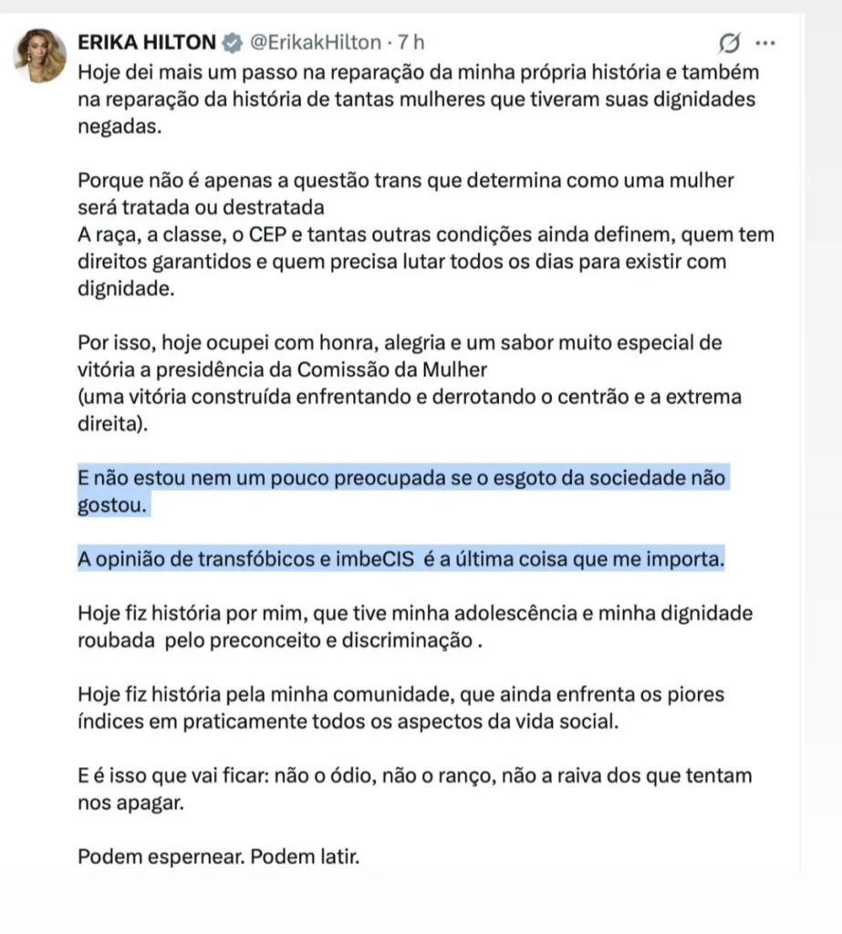 É preciso entender que nossa oposição a travestis e homens travestidos não tem a ver com eles serem hetero, bi ou gays. Não tem a ver, de modo geral, com como eles se vestem, nem com as modificações que fazem no próprio corpo. Tudo isso eles podem fazer, independentemente do que qualquer mulher ache. Mas não temos interesse em dialogar ou estabelecer relações com nenhum homem que alegue ser mulher, porque isso é uma mentira. Queremos distância de homens que fazem certo tipo de modulação anasalada, que só se comunicam na linguagem dos fãs de diva pop do Twitter, que acreditam que a vida seja um grande “tombar as inimigas”. Nem por isso deixamos de reconhecer os direitos desses homens de falarem, se vestirem e se portarem como quiserem. Queremos distância das mulheres que são assim também, apesar de não conhecermos nenhuma.
